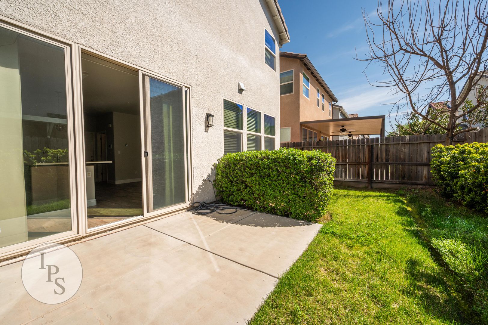 Backyard: Fenced with covered patio